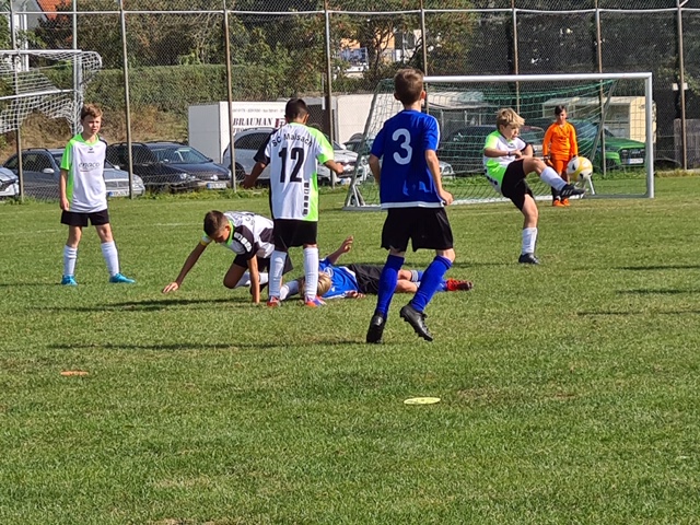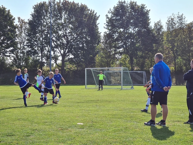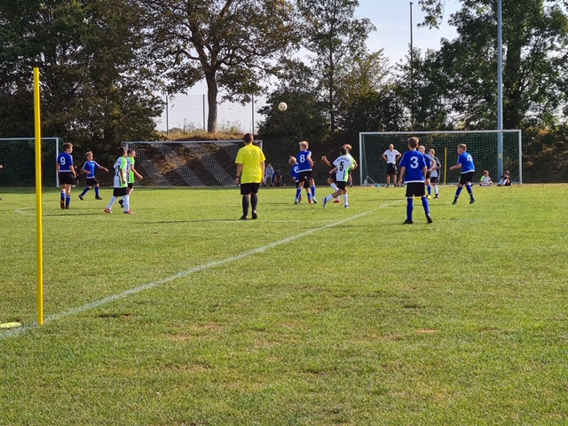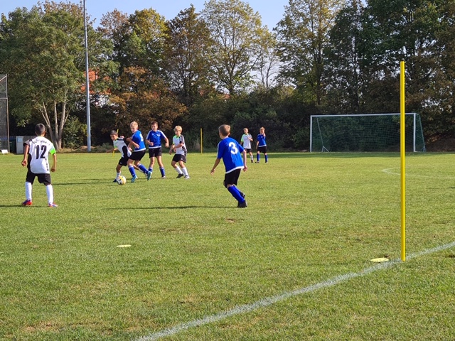 Die neuformierte Mannschaft aus den Jahrgängen 2008 und 2009 versuchte von Anfang an das Spiel zu bestimmen und konnte sehr schnell in Führung gehen. Durch eine Unachtsamkeit in der Aicher Abwehr kam der Gegner aber bis zur Halbzeit zum Ausgleich.