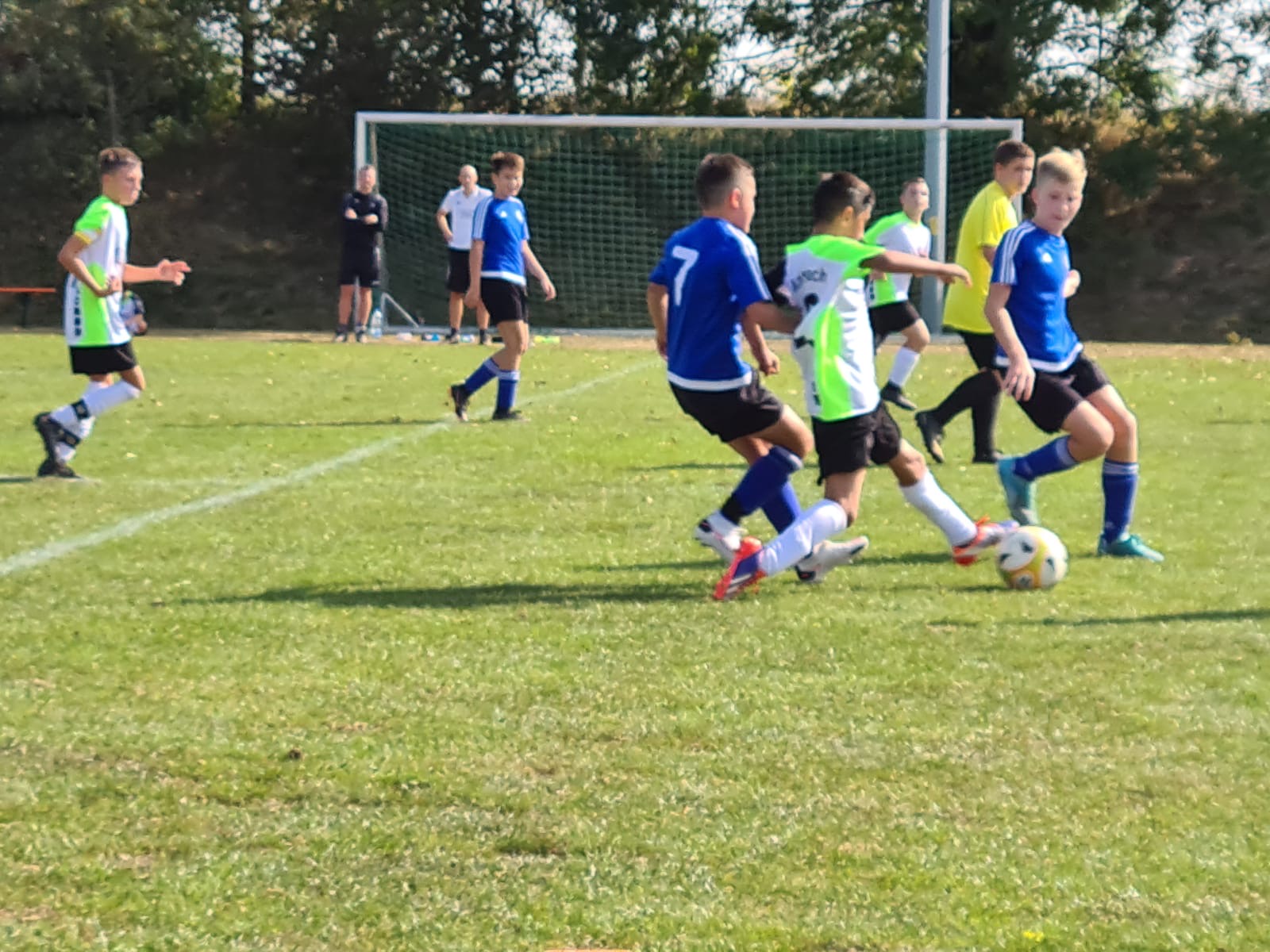 Die neuformierte Mannschaft aus den Jahrgängen 2008 und 2009 versuchte von Anfang an das Spiel zu bestimmen und konnte sehr schnell in Führung gehen. Durch eine Unachtsamkeit in der Aicher Abwehr kam der Gegner aber bis zur Halbzeit zum Ausgleich.