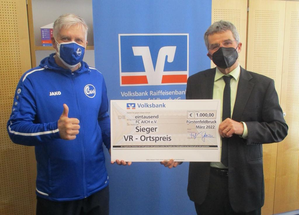 Bereits Ende März konnte der FC Aich den Gewinn von 1.000 EUR für den VR Ortspreis entgegennehmen. Vielen Dank an Alle, die uns auch dieses Jahr wieder dabei geholfen haben! Danke!