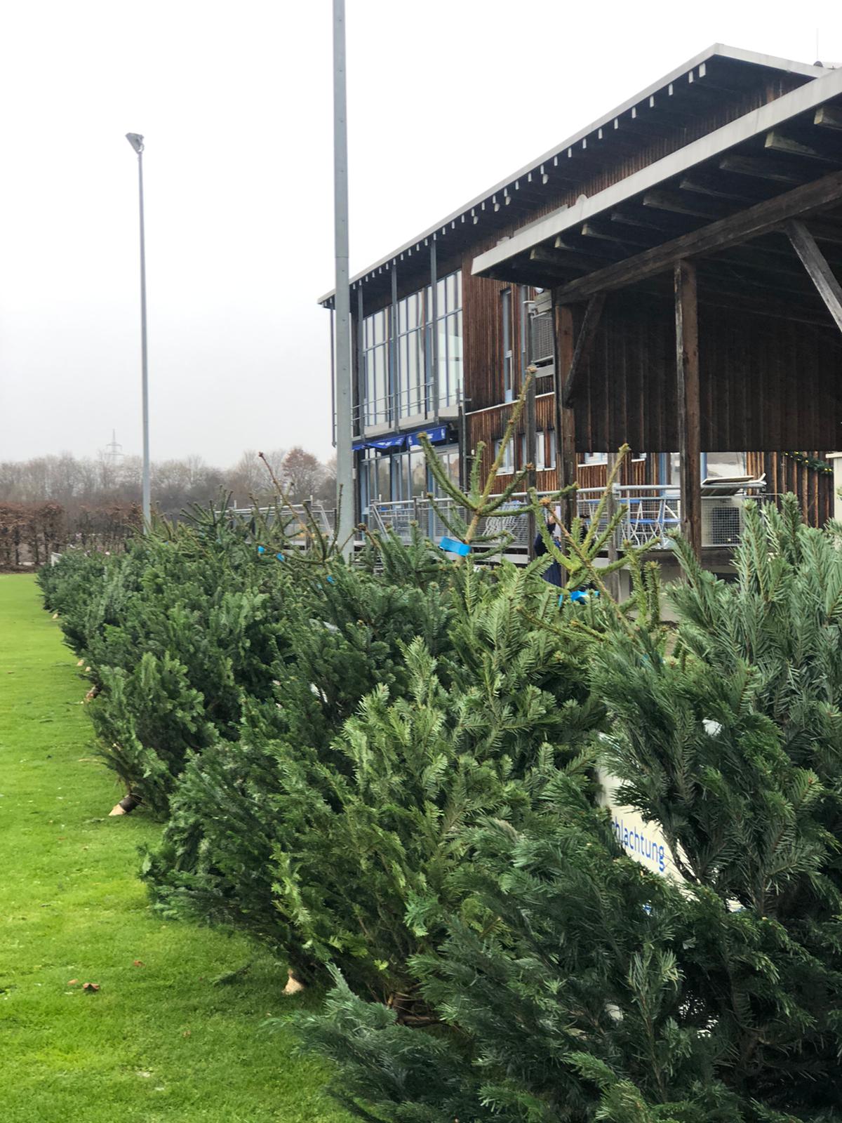 Auch dieses Jahr war wieder ein kleiner Tannenwald am Aicher Sportpark zu begutachten. Nach Vorbestellung konnten die Premium Nordmanntannen zunächst begutachtet und ausgesucht werden. Anschließend wurden diese dann von den Fußballer/innen fachkundig verpackt und verkauft.