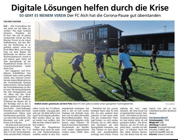 Trotz Corona Beschränkungen lief es beim FC Aich recht gut. Lest mehr hierzu im Interview von Gerhard mit dem Merkur.