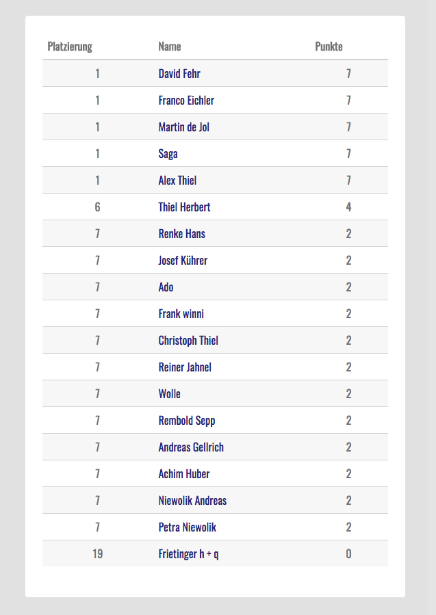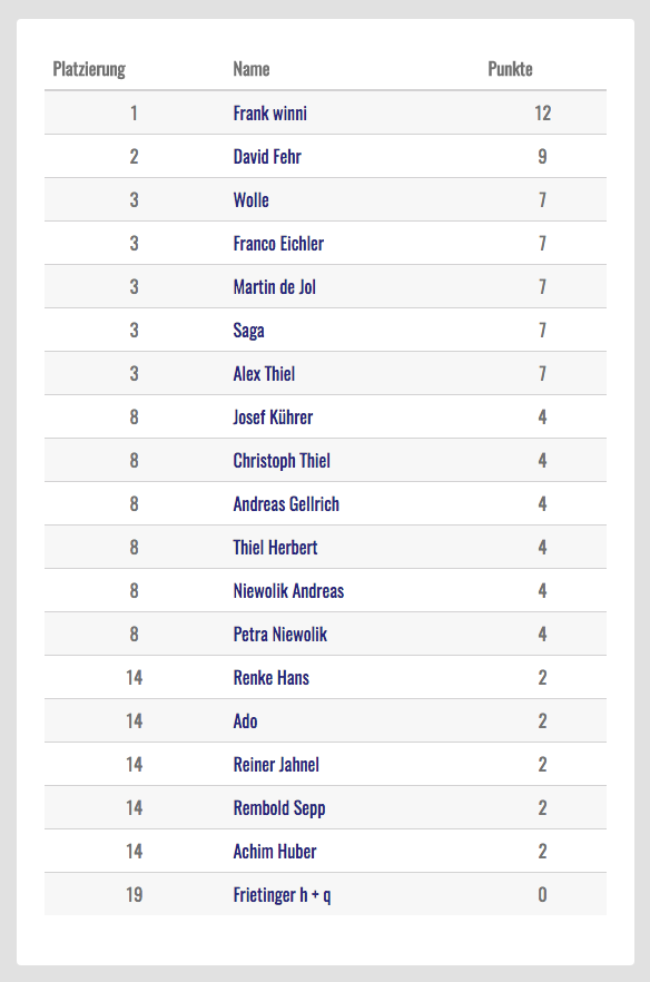 Dieses Jahr gehen 19 Tipper ins Rennen um den bisherigen Tippkönig Andreas Gellrich die Krone abzuluchsen.