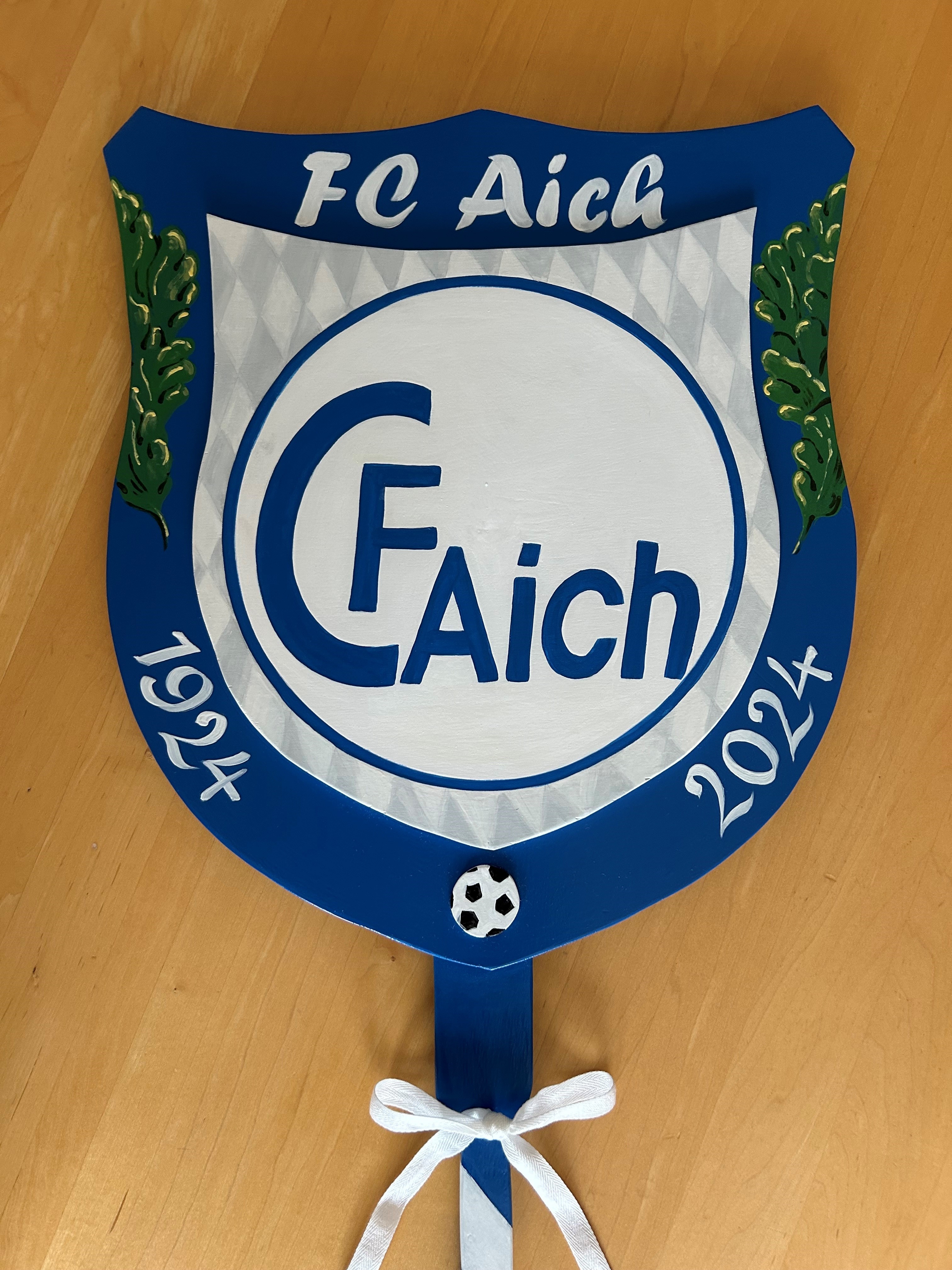 Für Festumzüge und offizielle Veranstaltungen kann sich der FC Aich über sein neues Vereinstaferl freuen.