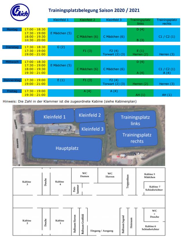 Die Belegung der Trainingsplätze für die Saison 2020 / 2021 wurde überarbeitet. Bitte werft einen Blick darauf, schaut Euch auch das Thema Kabinenplan an.