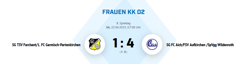 Mit SG TSV Farchant/1. FC Garmisch-Partenkirchen und SG FC Aich/FSV Aufkirchen /SpVgg Wildenroth trafen sich am Samstag zwei Topteams. Für SG TSV Farchant/1. FC Garmisch-Partenkirchen schien SG FC Aich/FSV Aufkirchen /SpVgg Wildenroth aber eine Nummer zu groß, sodass am Ende eine 1:4-Niederlage stand.